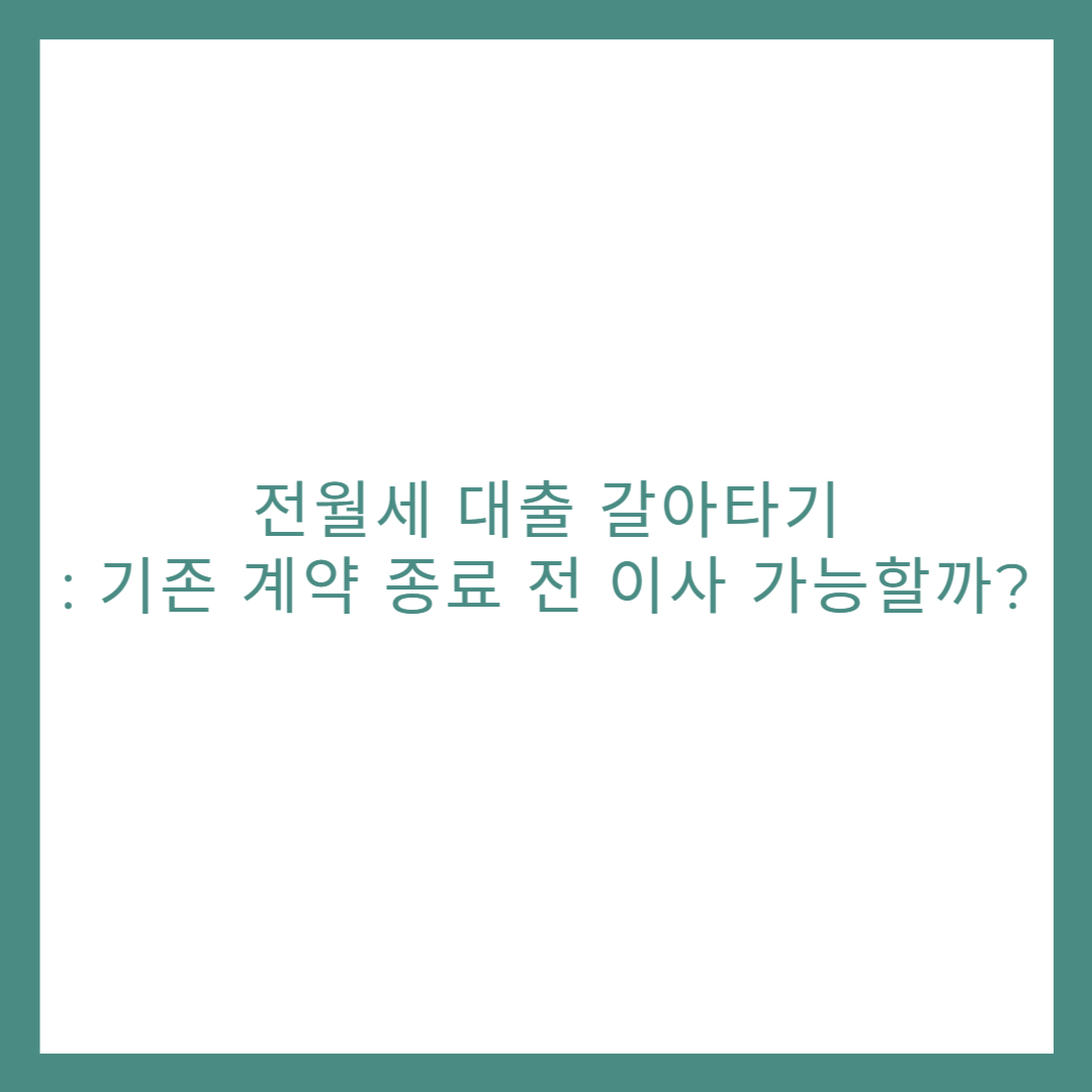 전월세 대출 갈아타기: 기존 계약 종료 전 이사 가능할까?