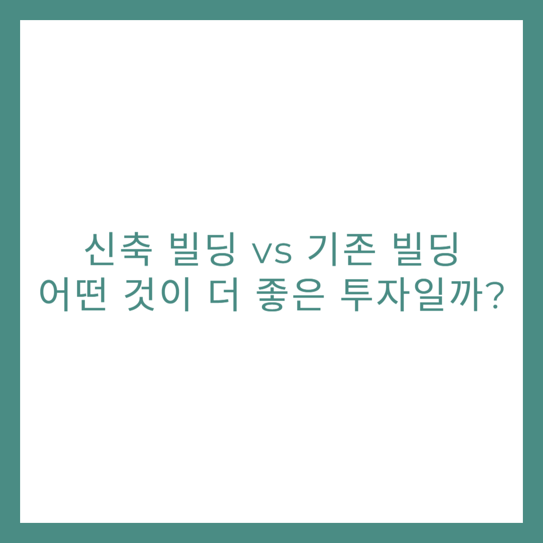 신축 빌딩 vs 기존 빌딩, 어떤 것이 더 좋은 투자일까? 부동산 투자에서 빌딩 선택은 큰 결정을 내리는 중요한 부분입니다. 특히, 신축 빌딩과 기존 빌딩은 각각 장단점이 있어 투자자들이 고민하게 만듭니다. 각 유형의 빌딩은 투자의 목적, 자본금, 위험 수용 능력 등에 따라 다르게 평가될 수 있기 때문에, 어떤 빌딩이 더 나은 선택이 될지를 결정하기 위해서는 각 요소를 면밀히 분석하는 것이 중요합니다. 여기서는 신축 빌딩과 기존 빌딩의 장단점을 비교하여 어떤 경우에 각 유형이 적합한지 살펴보겠습니다. 1. 신축 빌딩의 장점(1) 낮은 유지 보수 비용신축 빌딩은 최신 설계와 고급 자재를 사용하여 건축되기 때문에, 초기에는 유지 보수 비용이 거의 들지 않습니다. 더불어 최신 기술과 에너지 효율적인 시스템이 ..