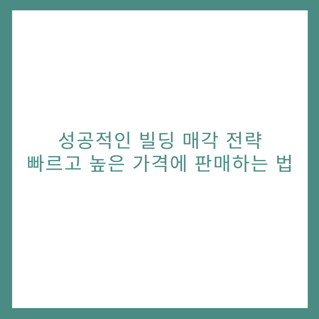 성공적인 빌딩 매각 전략 – 빠르고 높은 가치로 매각하는 법