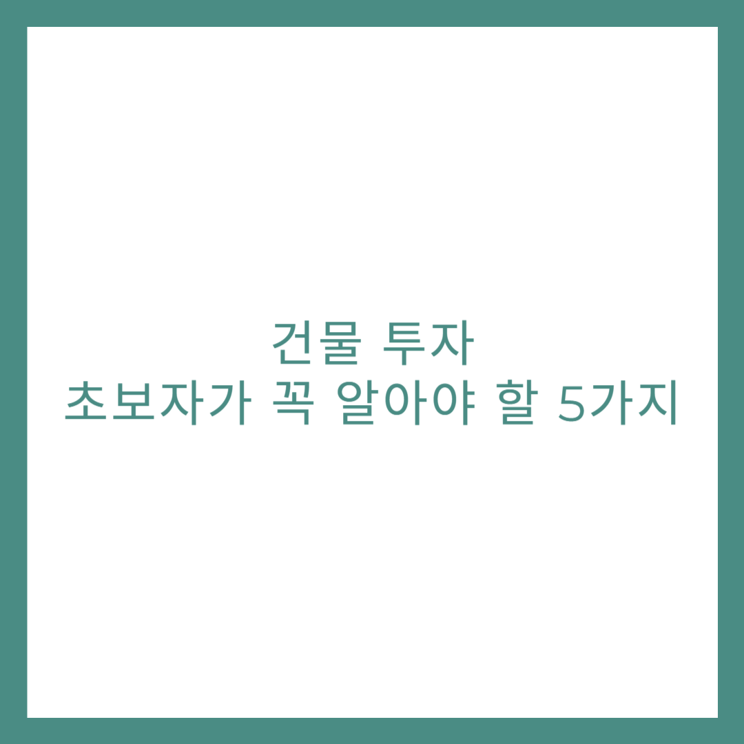 건물 투자, 초보자가 꼭 알아야 할 5가지