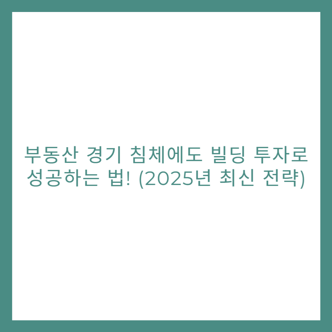부동산 경기 침체에도 빌딩 투자로 성공하는 법! (2025년 최신 전략)