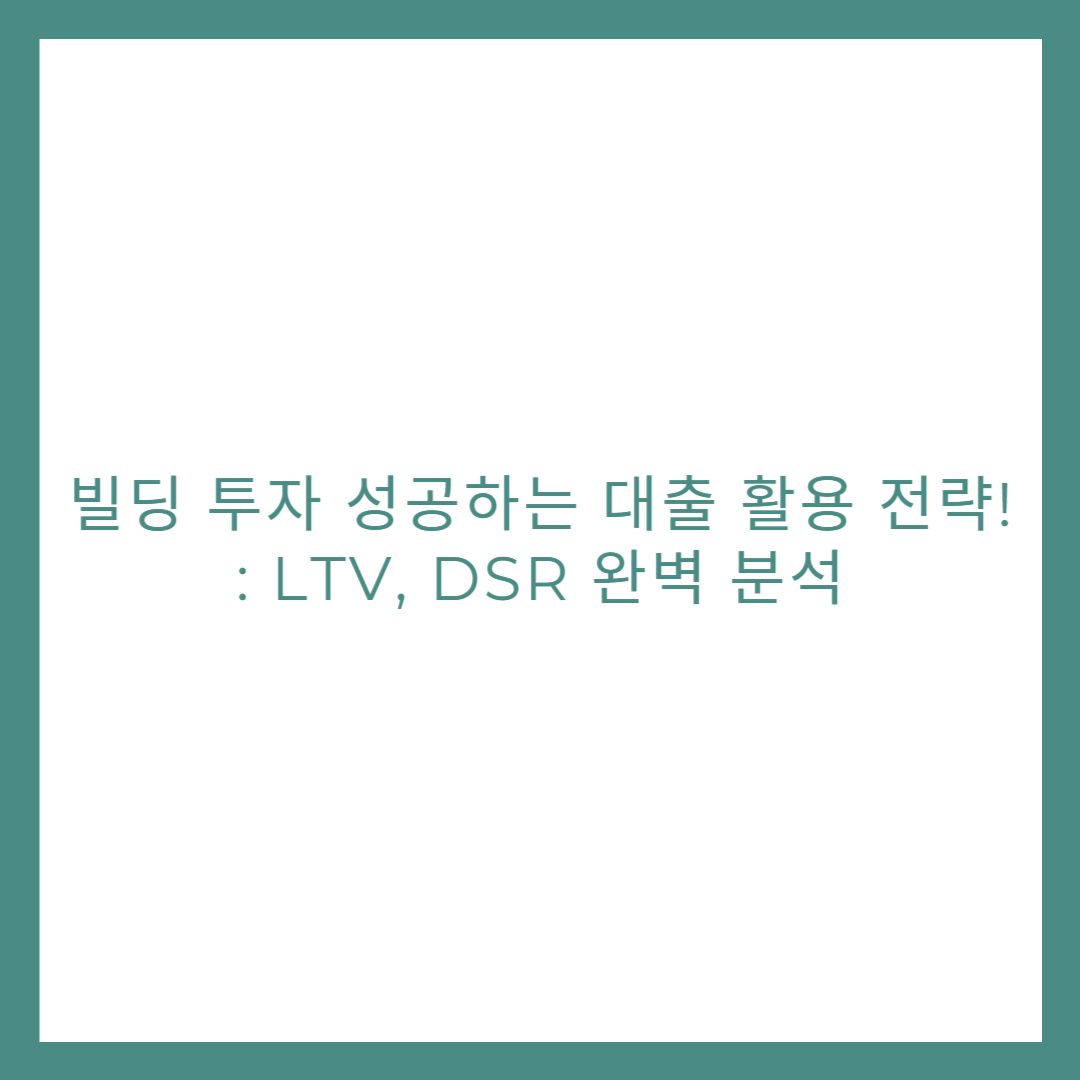 📢 부동산 경기 침체에도 성공하는 빌딩 투자! 대출 활용 전략 (LTV, DSR 완벽 분석)