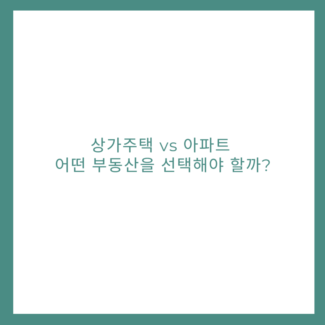 상가주택 vs 아파트, 어떤 부동산을 선택해야 할까? 🏠🏢